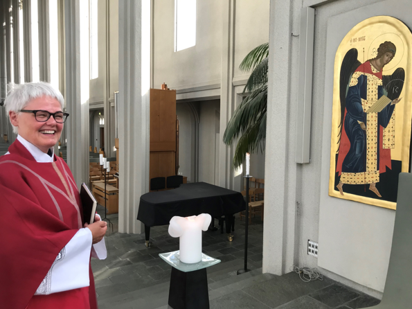 Trúfastur og öflugur söfnuður kom saman í Hallgrímskirkju í morgun. Hann hafði svarað kalli kirkjunnar og morgunsólarinnar og naut þar fagurrar helgiþjónustu. Setið var inni í kór og horft fram kirkju, sjónarhorn sem hinni almenni kirkjugestur hefur jafnan ekki. Sr. Irma Sjöfn Óskarsdóttir, þjónaði ásamt messuþjónum.