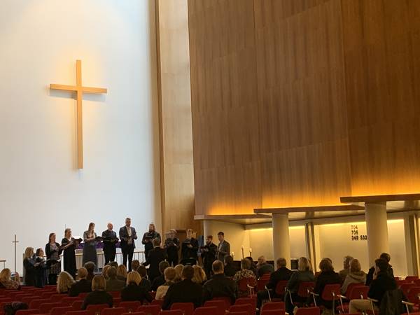 Nýir sálmar voru sungnir milli dagskráratriða og var að sjálfsögðu hressilega tekið undir. Lára Bryndís Eggertsdóttir, organisti Neskirkju, lék undir á píanó.