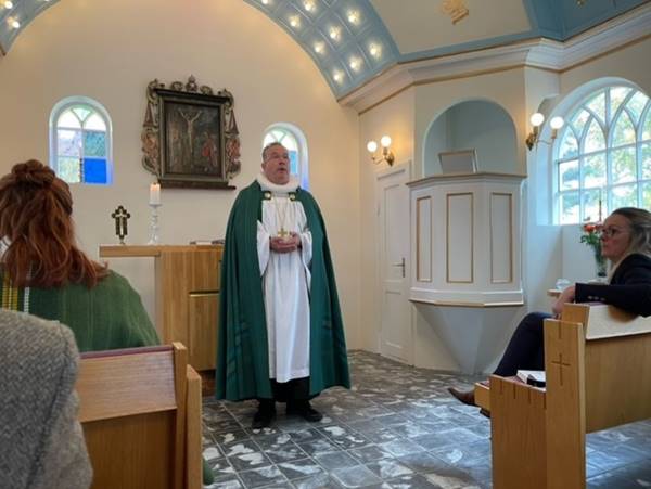 Sr. Gísli Gunnarsson vígslubiskup á Hólum prédikaði og sr. Jóhanna Gísladóttir prestur í Akureyrar- og Laugalandsprestakalli þjónaði fyrir altari.