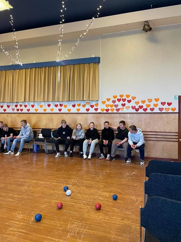 Þá buðu krakkarnir eillilífeyrisþegum að koma og spila boccia í félagsheimilinu.