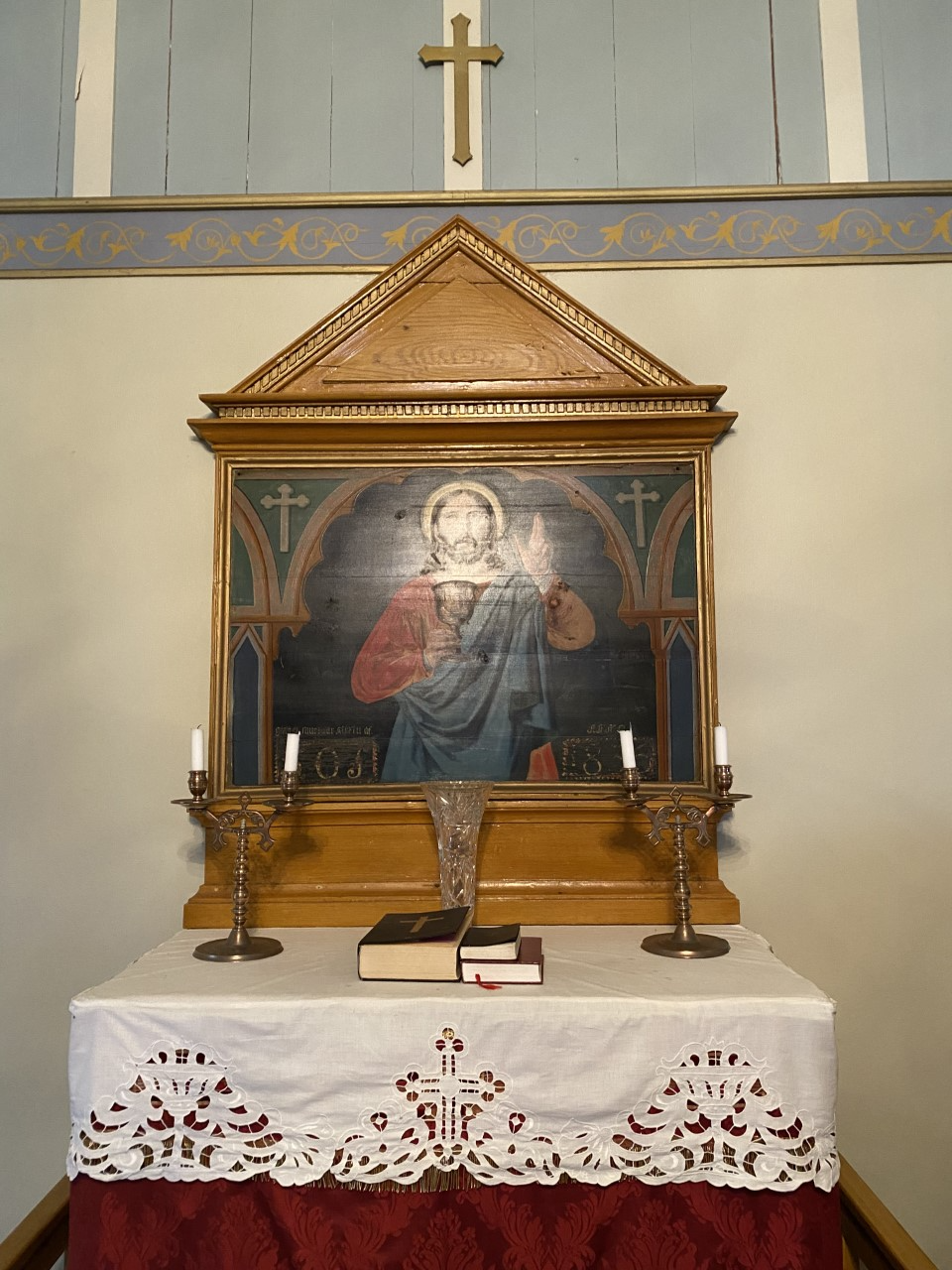 Henni þótti slæmt að krossinn var ekki kominn upp eftir viðgerðirnar og gekk mjög á eftir því að hann færi upp.“