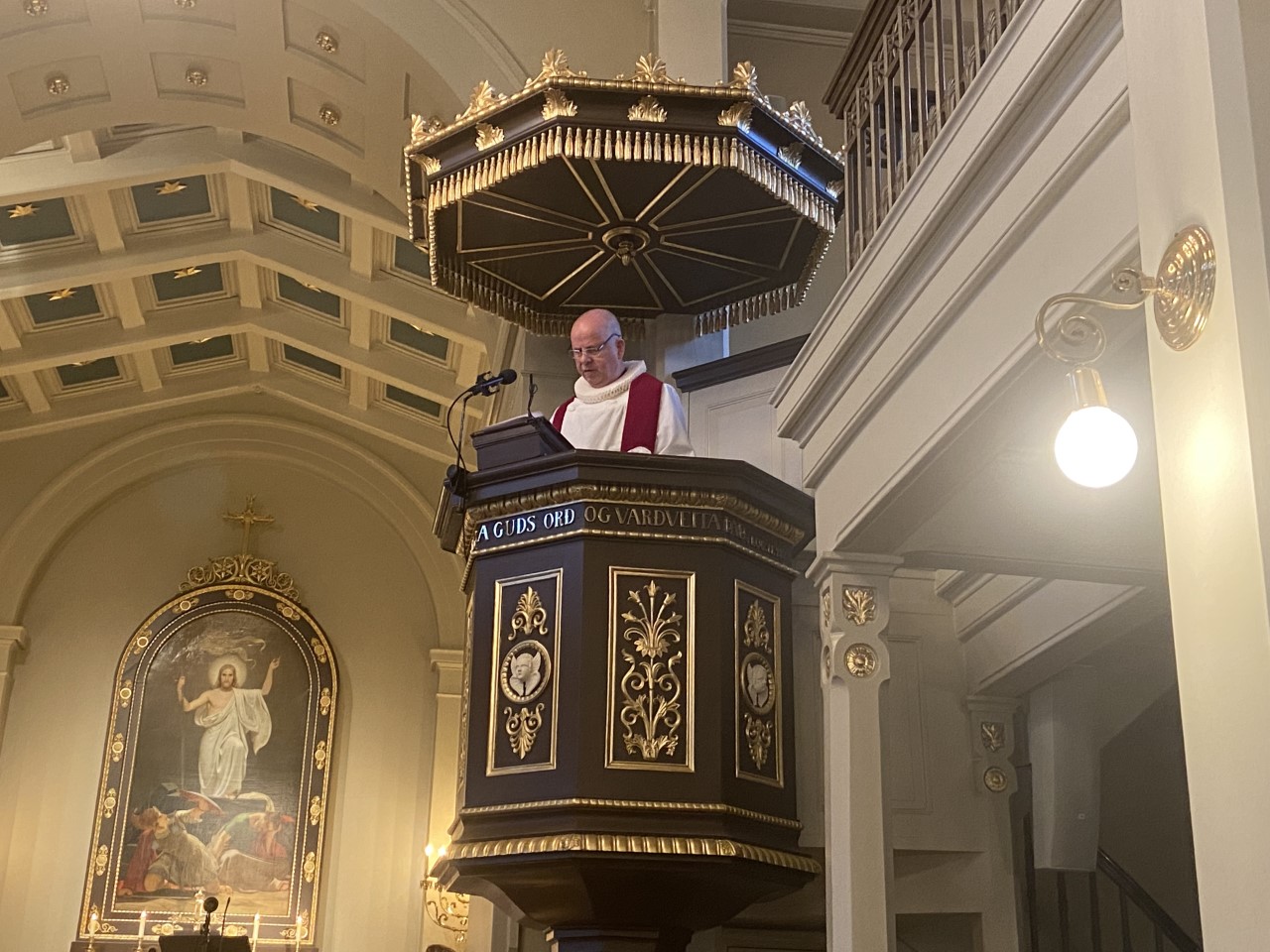 Hóf hann predikun sína á því að segja frá trúarlegri upplifun sem sálmaskáldið Bjarni Eyjólfsson varð fyrir í Dómkirkjunni þegar hann var ungur maður.
