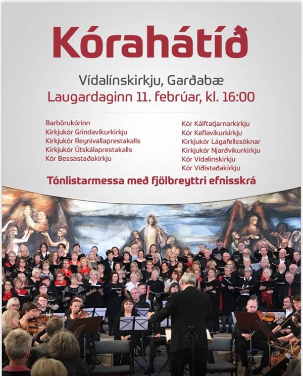 VídalínskirkjaFjölmennur samkór frá Grindavík, Hafnarfirði, Garðabæ, Álftanesi, Mosfellsbæ, Keflavík, Njarðvík, Vogum, Garði og Sandgerði, Kjalarnes og Kjós kemur fram í Vídalínskirkju laugardaginn 11. febrúar kl. 16:00