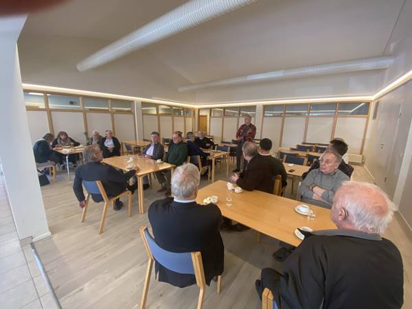 Í hádegisverðinum sagði Bjarni Gíslason framkvæmdastjóri Hjálparstarfsins frá ferð sinni til Úganda, en hann kom heim úr þeirri ferð daginn áður.