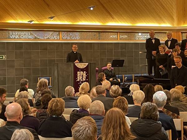 Verkið er byggt á bæninni Gloria in excelsis Deo frá fjórðu öld og skýrðu prestar kirkjunnar frá verkinu á afmælishátíðinni.