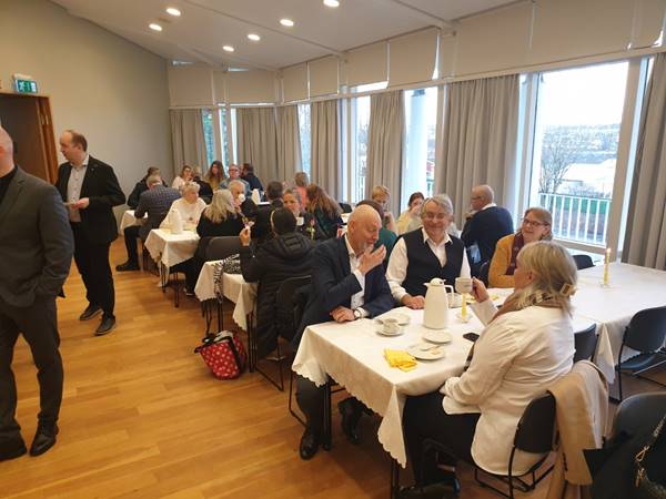 Sr. Alfreð Örn við kaffiborðiðKirkjuafmæli eru ævinlega hátíðlegar stundir og nú á vordögum hafa verið haldin nokkur kirkjuafmæli á höfuðborgarsvæðinu.