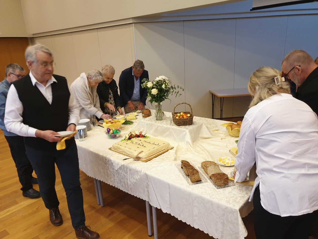 Eftir messuna var morgunverður og afmæliskaka í boði.