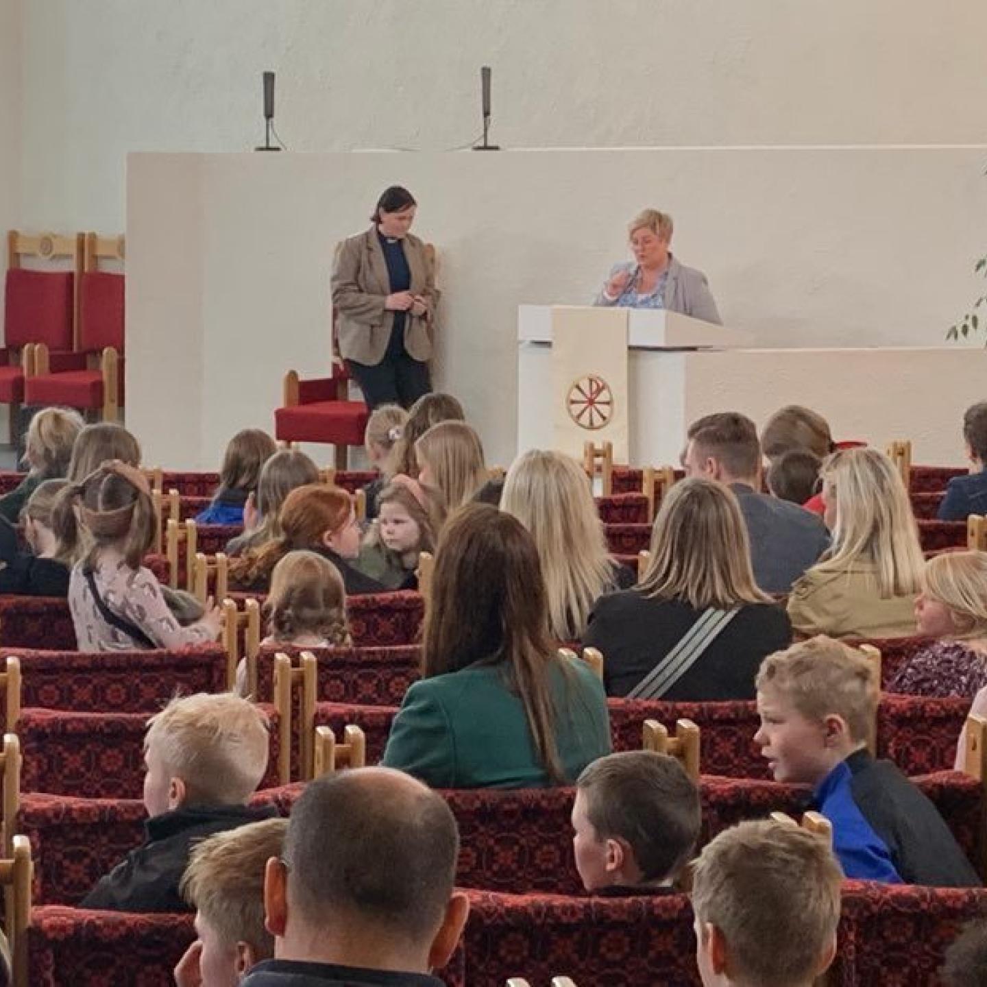 Inni í kirkjunni söng Barnakór TónGraf og TónFoss þrjú lög undir stjórn Eddu Austmann og Auðar Guðjohnsen, við undirleik Ástu Haraldsdóttur kantors Grensáskirkju.