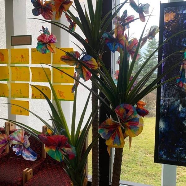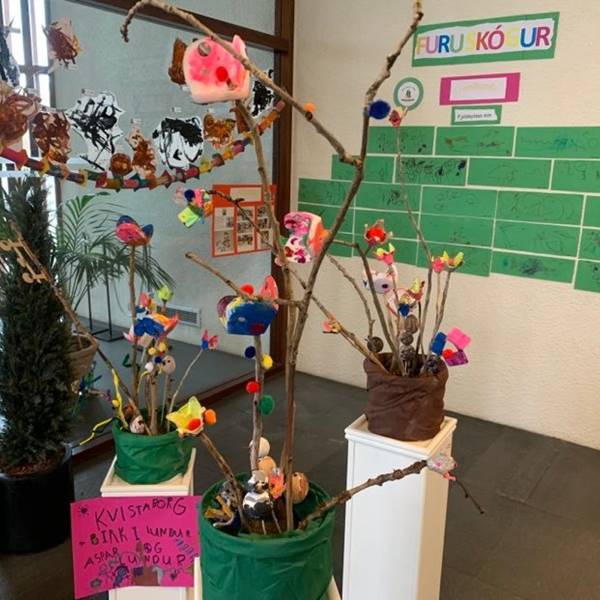 Það eru listaverk barna af leikskólunum Garðaborg, Kvistaborg og Furuskógum, sem eru til sýnis í anddyri kirkjunnar.