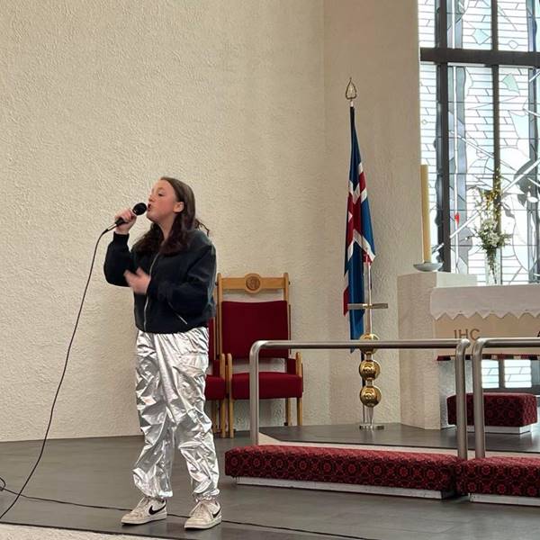 Dagskránni í Bústaðakirkju lauk með einsöng Heiðrúnar Lóu, sem söng lag eftir Adele.