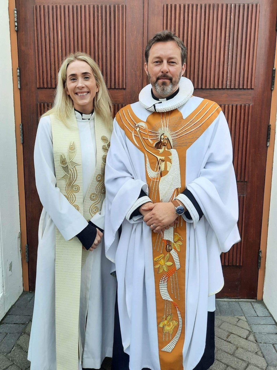Einnig þjónuðu í athöfninni sr. Jónína Ólafsdóttir sóknarprestur í Hafnarfjarðarkirkju og sr. Sighvatur Karlsson prestur í Hafnarfjarðarkirkju.
