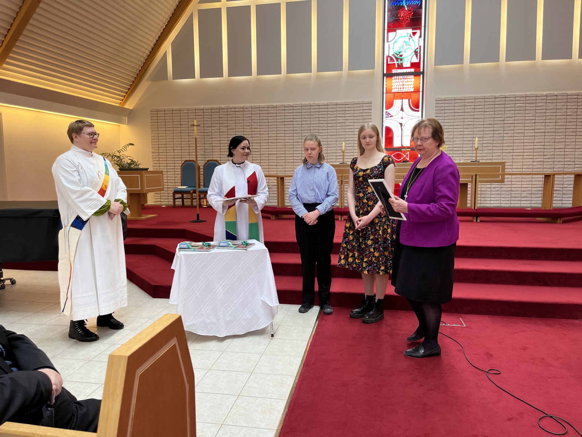 „þetta yndisleg stund með fjölskyldum, vinum, messuþjónum, kirkjukór og kirkjustarfsfólki til staðar.