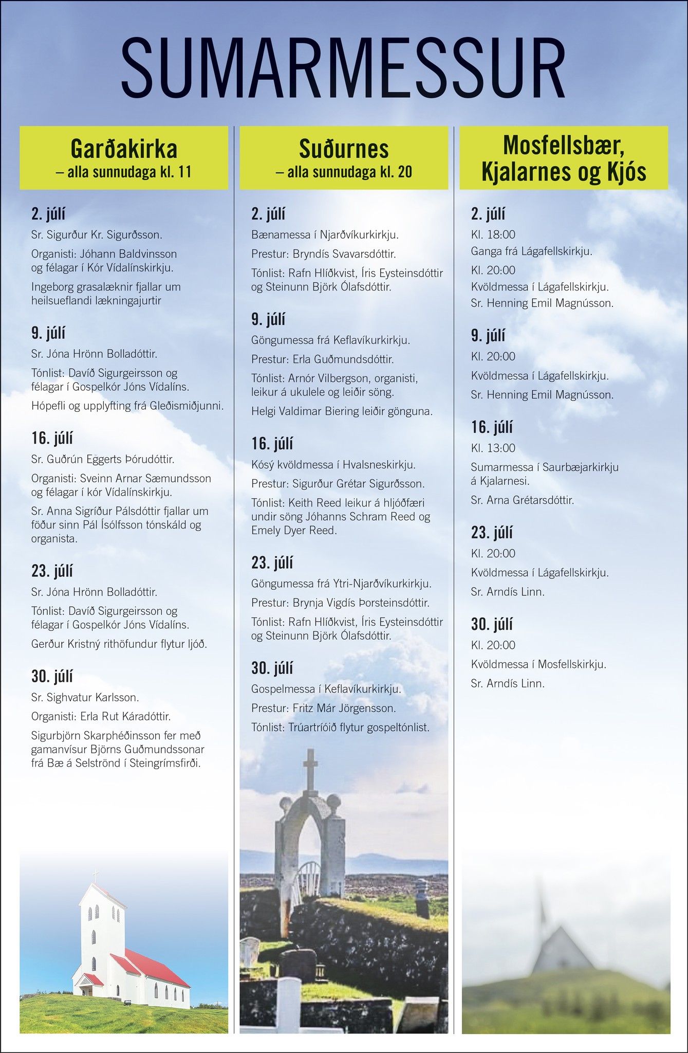 Sumarmessur í Mosfellsbæ, Kjalarnesi og Kjós