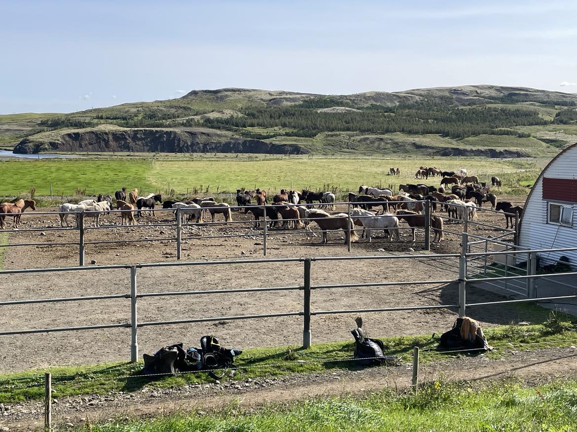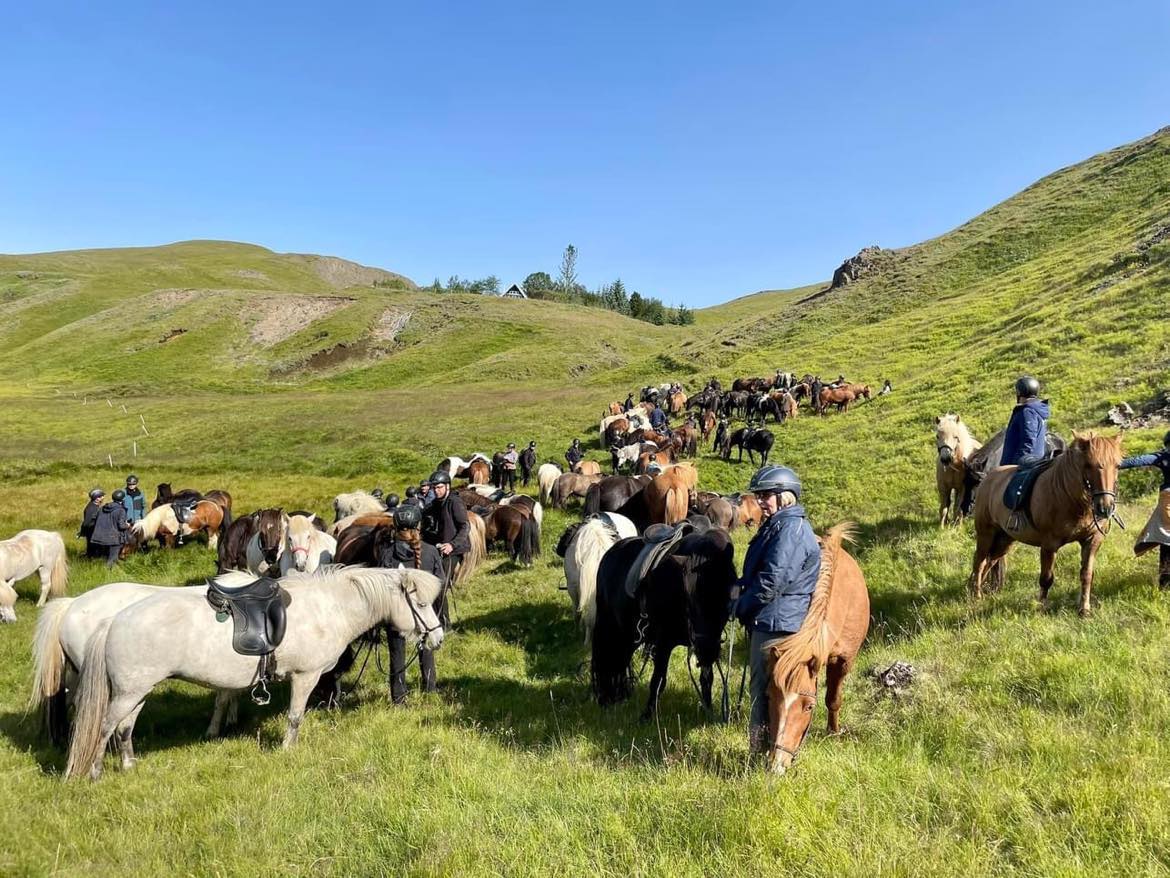 „Eftir reið yfir ána var komið við í Hlíð þar sem fleira reiðfólk bættist í hópinn.