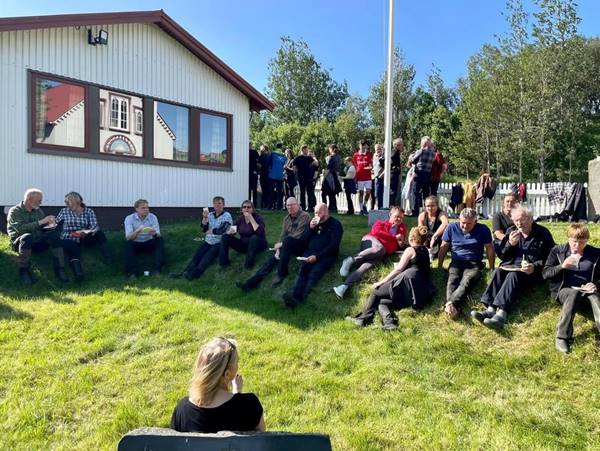 Sat fólk úti í garði og naut himneskrar blíðu, kaffibrauðs af bestu gerð og ljúfrar samveru“