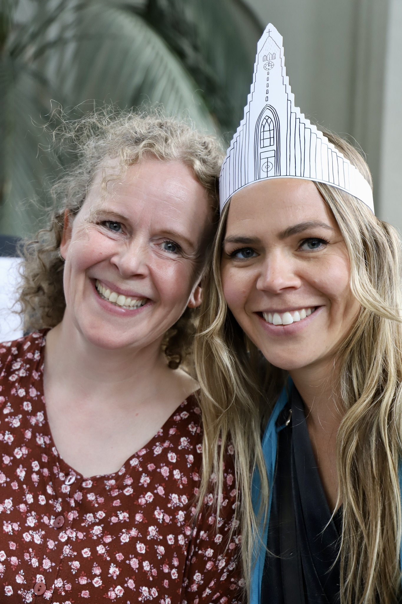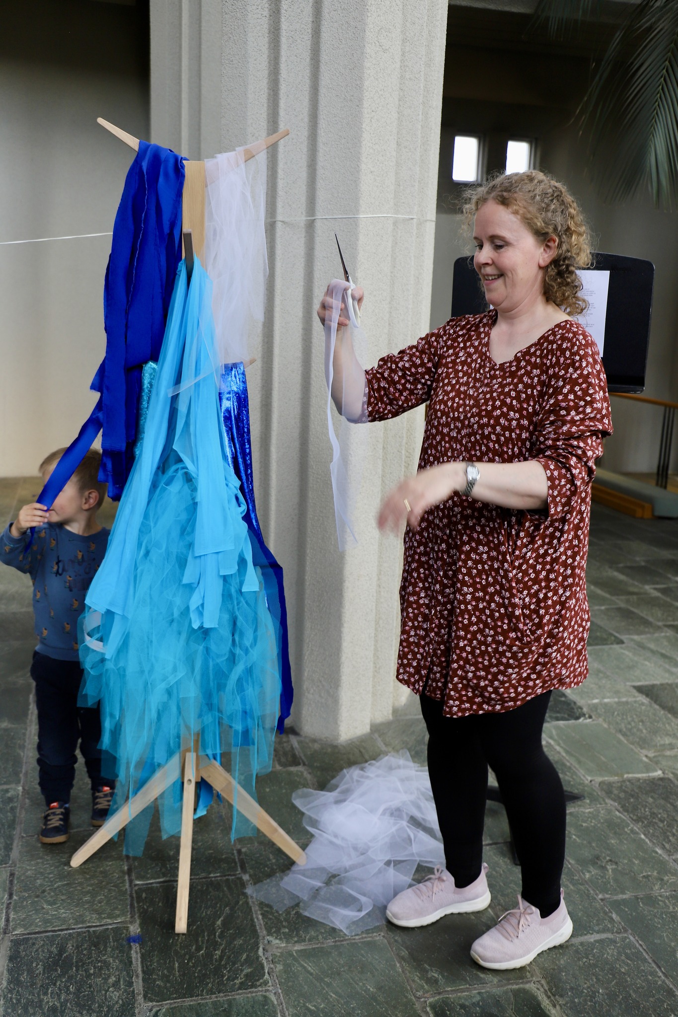 Um 200 manns komu fram á Sálmafossi og börnin bjuggu til barnafoss úr efnisstrimlum sem þau hengdu upp og hlupu í gegn um.