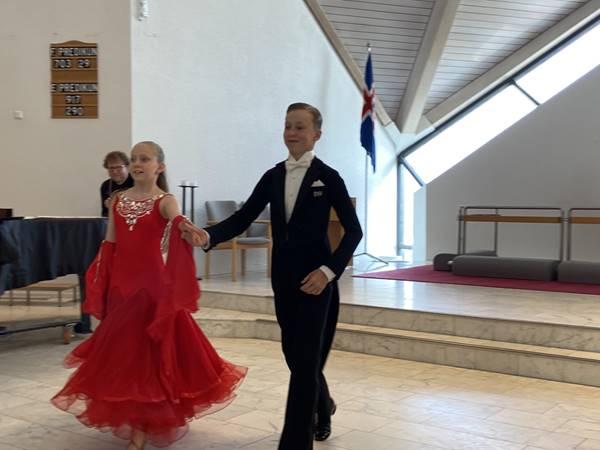 Eftir predikun og undir eftirspilinu dönsuðu systkinin Gísli Snær Reynisson og Auður Laufey Reynisdóttir vals.