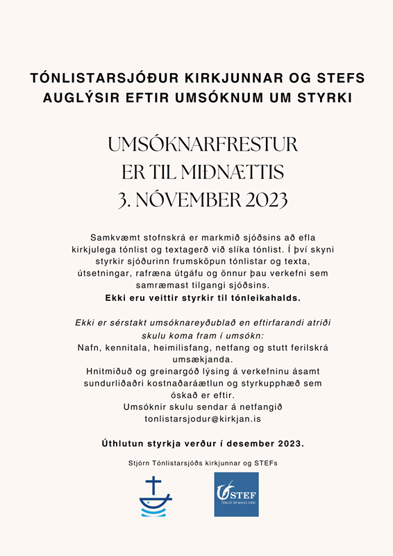 Umsóknir skulu sendast á netfangið tonlistarsjodur@kirkjan.is.