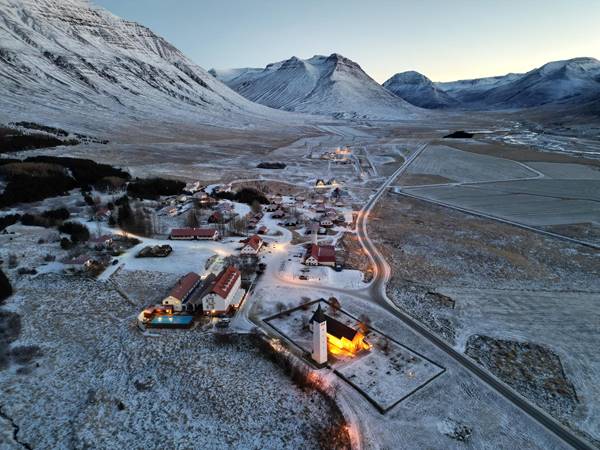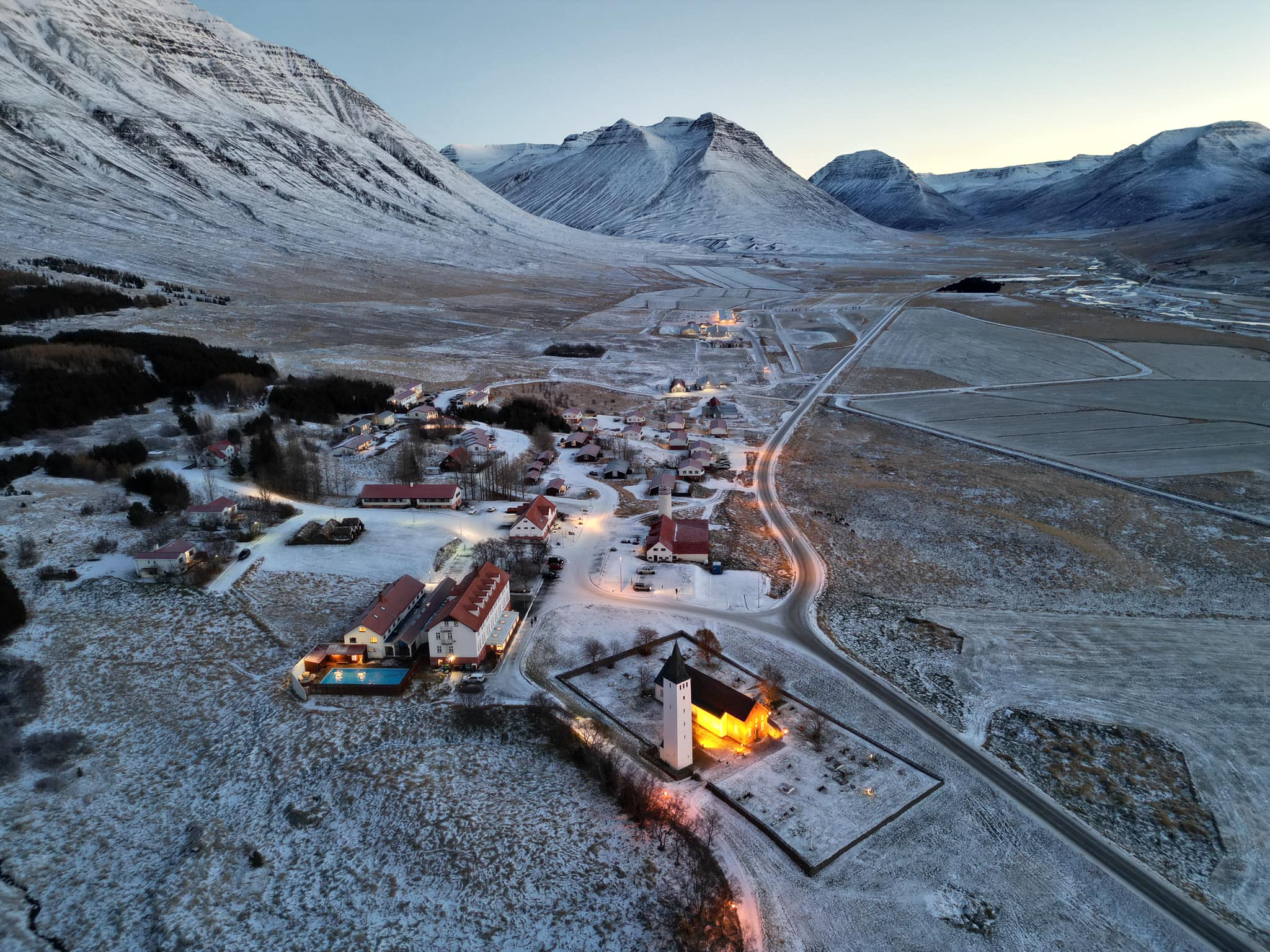 Hér fyrir neðan má sjá myndir frá vígslunni og tvær fallegar loftmyndir af Hólum í Hjaltadal.