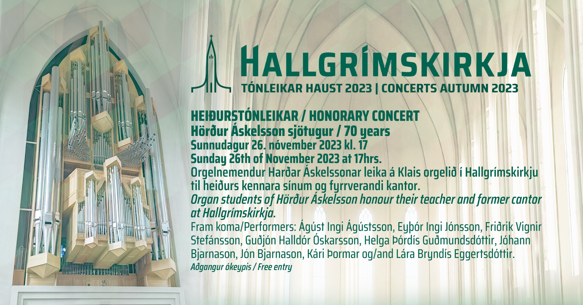 „Í framhaldinu var ákveðið að setja heiðurstónleikana á hausttónleikaröð kirkjunnar og á þann hátt vill Hallgrímskirkja heiðra Hörð Áskelsson sjötugan“