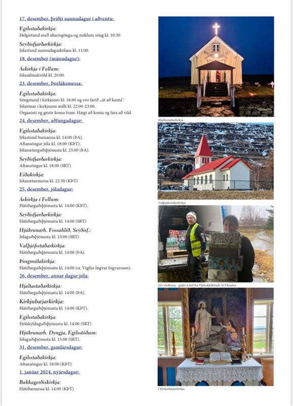 Þann 13. desember verður aðventukvöld í Bakkagerðiskirkju, sem er á Borgarfirði eystra og aðventukvöld í þjónustuhúsinu við Hofteigskirkju í Jökuldal klukkan 20:00.