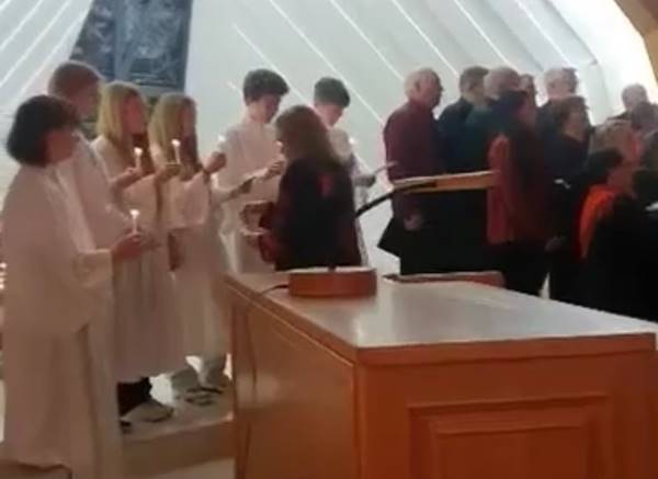„Kór Hólaneskirkju söng yndisfögur jólalög, fermingarbörn báru inn ljós í kirkjuna og tendruðu á aðventukransinum.