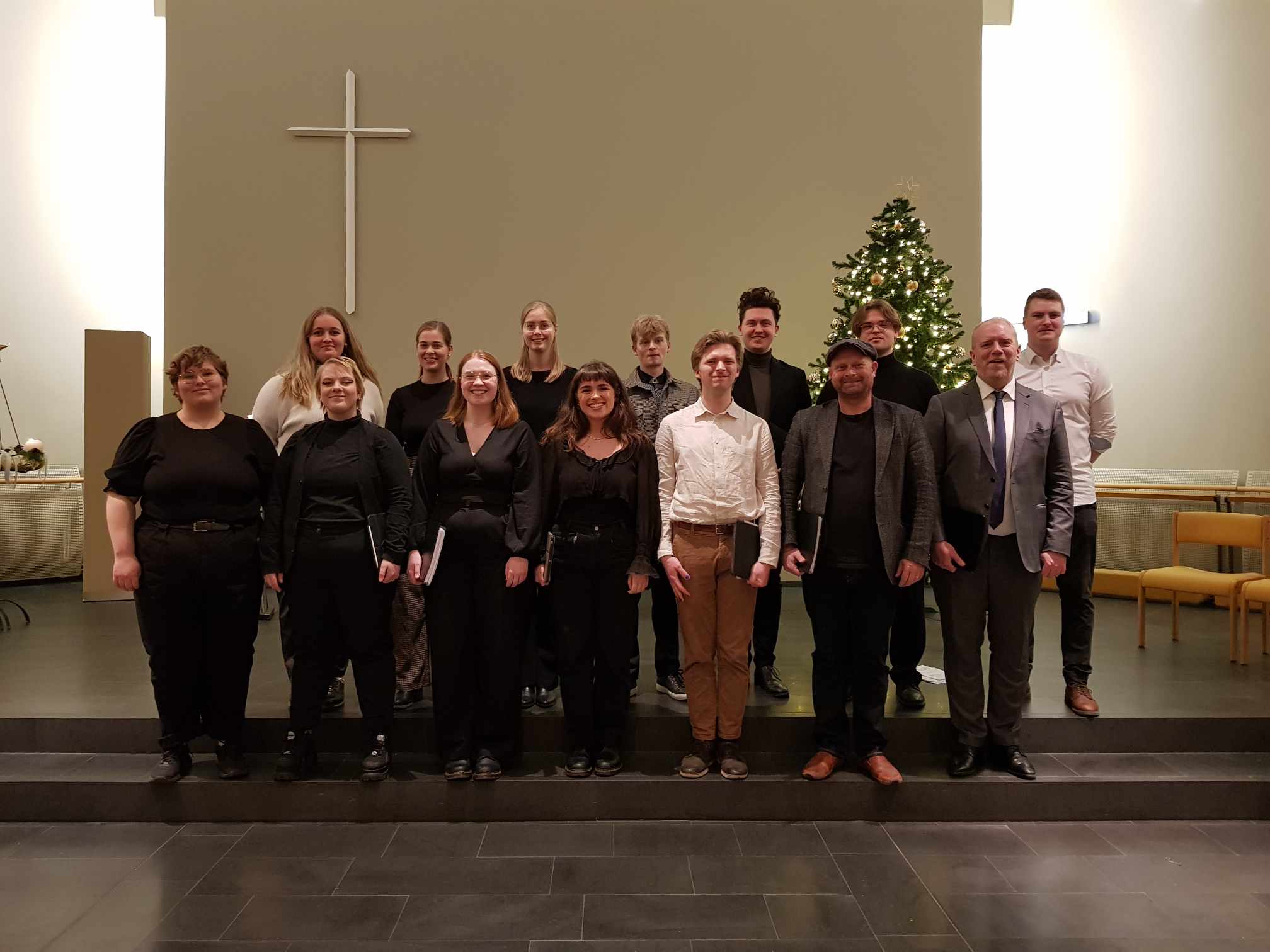 Nemendur Tónskólans ásamt skólastjórJólatónleikar Tónskóla þjóðkirkjunnar fóru fram 8. og 9. desember.