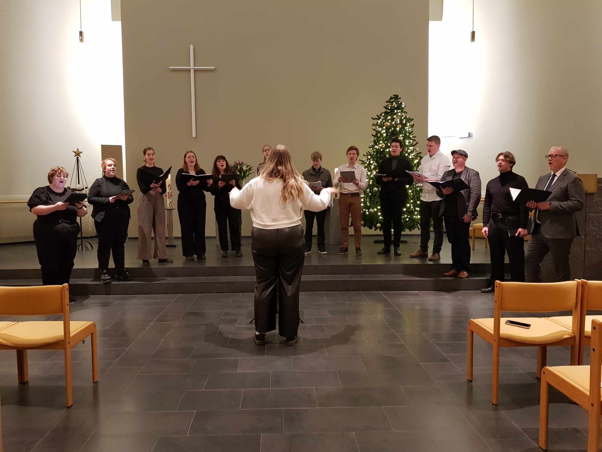 Á seinni tónleikunum voru kórstjórnarnemendur Tónskóla þjóðkirkjunnar og Listaháskóla Íslands í aðalhlutverki í stjórnun og kórsöng.