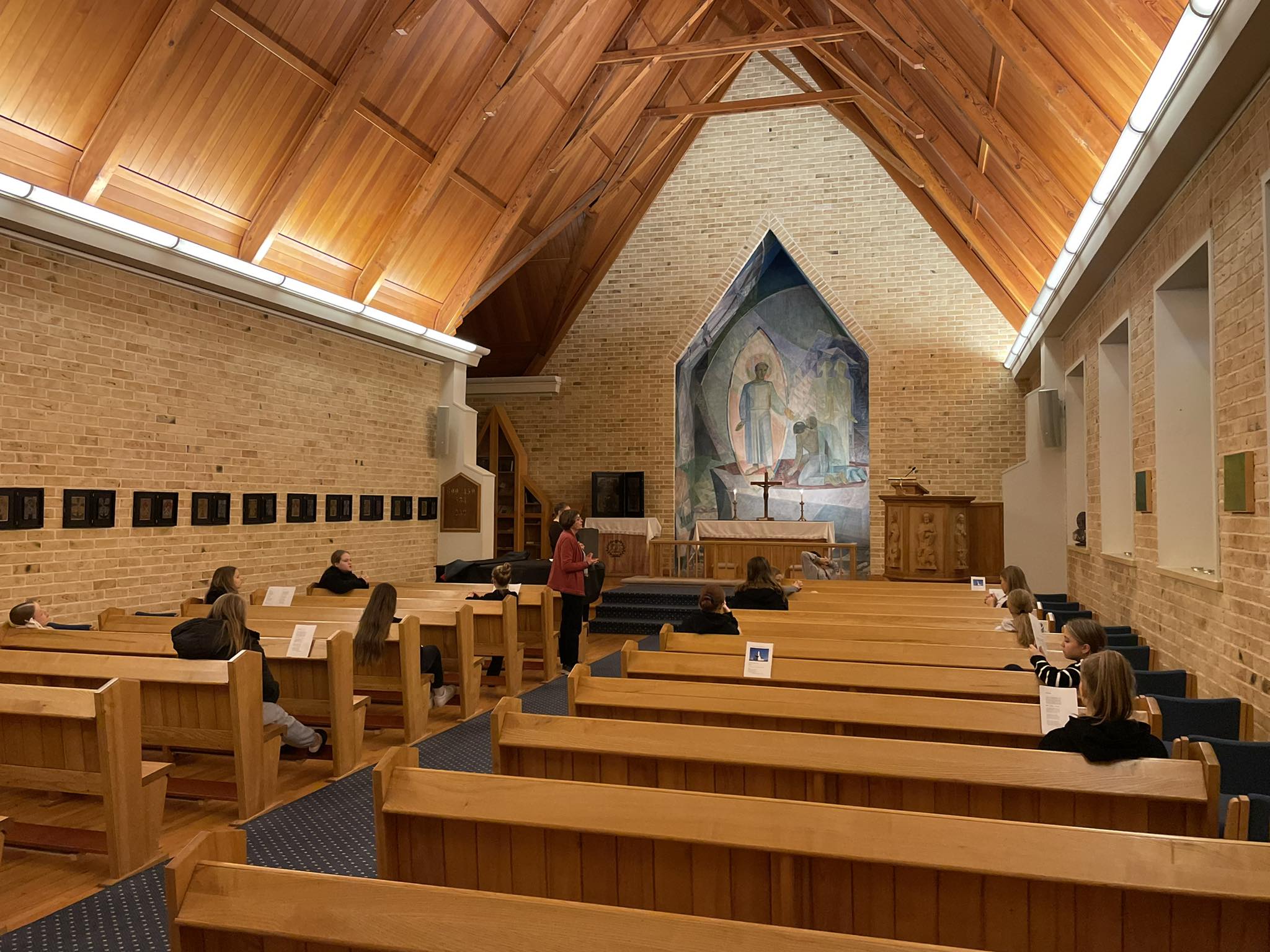 Síðan fórum við með hálfan hópinn í einu til helgistundar í Hallgrímskirkju í Saurbæ og dreifðum þeim um kirkjuna til að hlusta á þögnina“