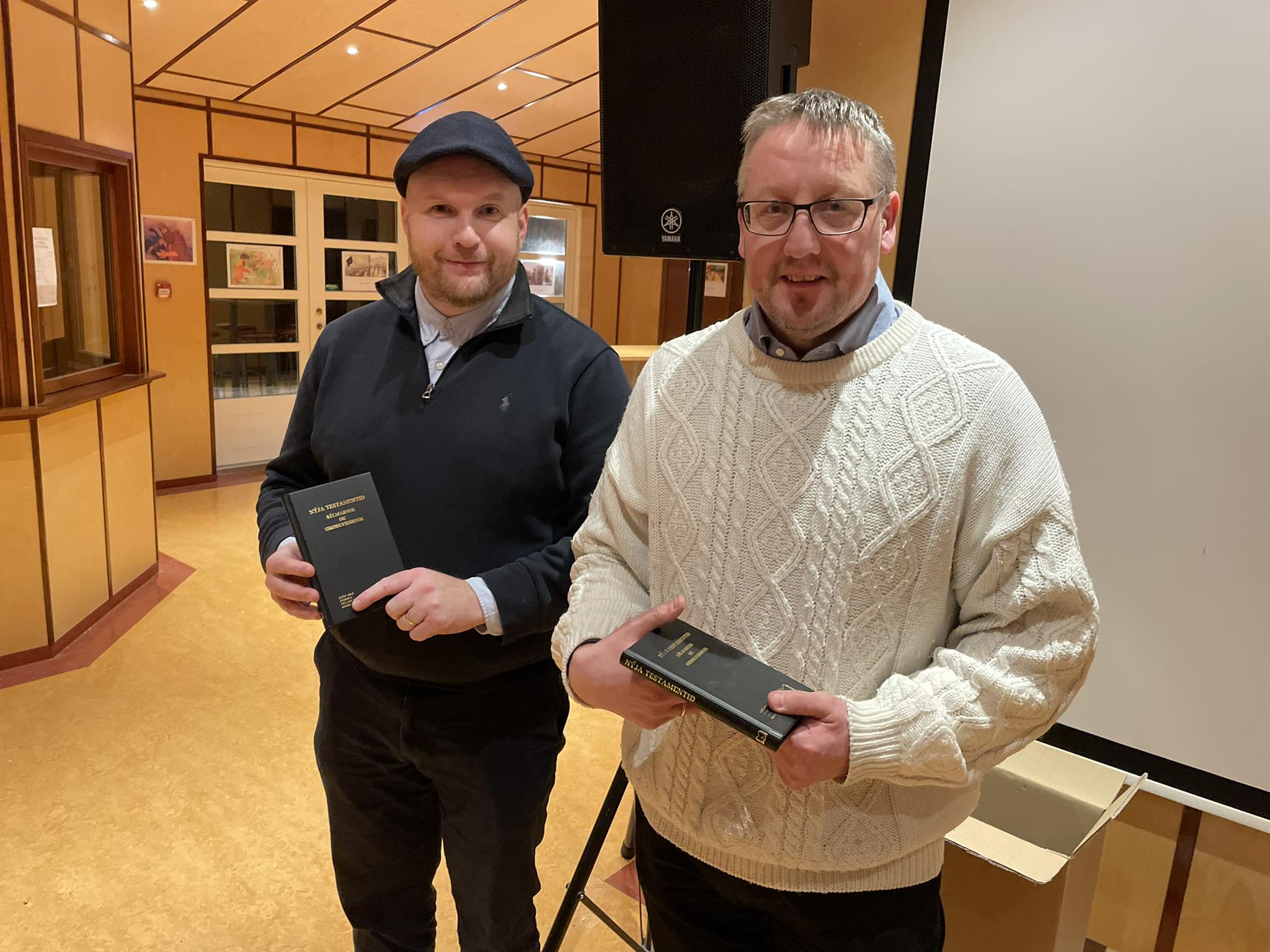 Tveir félagar úr Orðinu, þeir Sveinn Valdimarsson og Þorsteinn Arnórsson komu og afhentu börnunum nýja testamentið að gjöf.