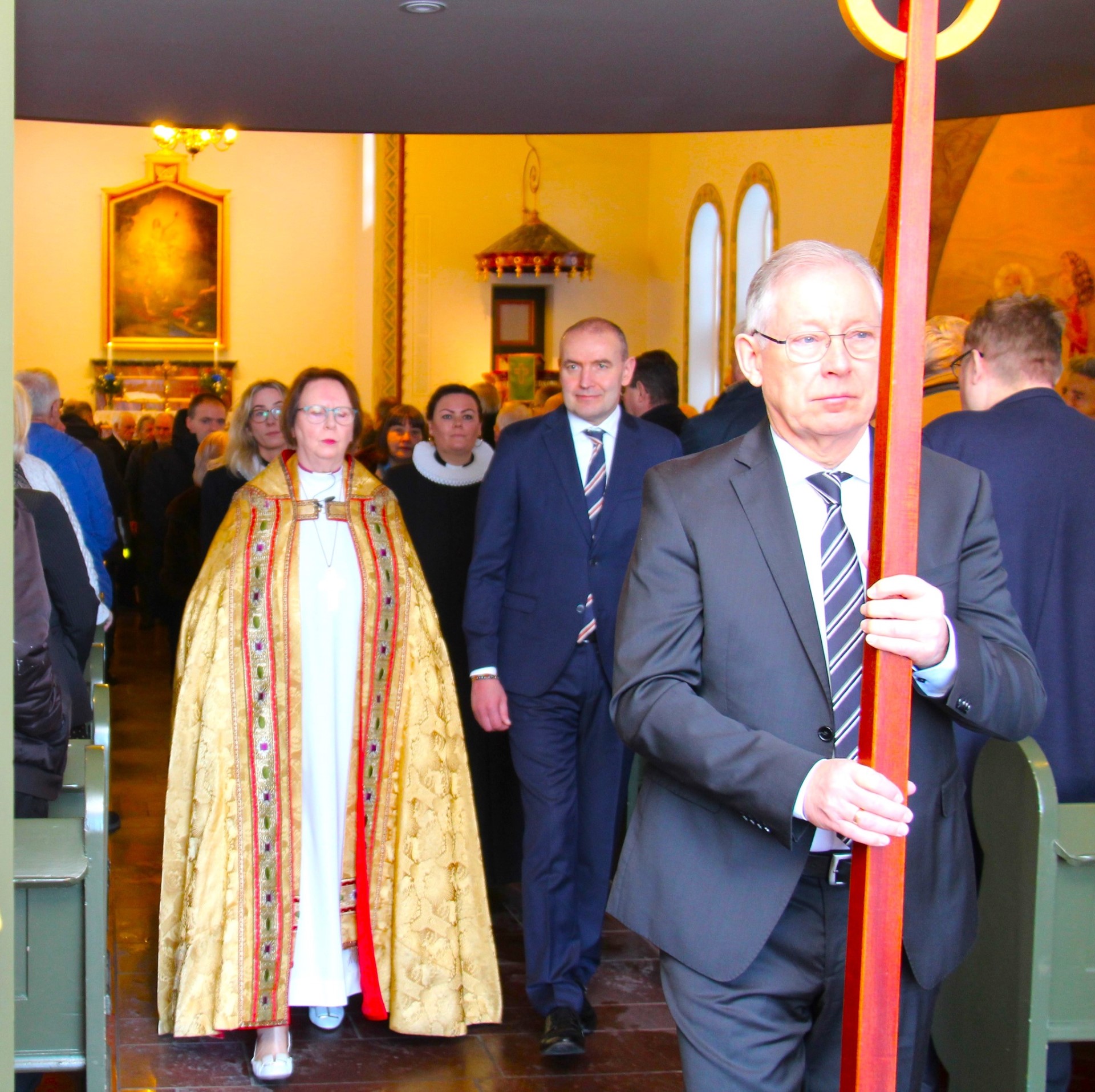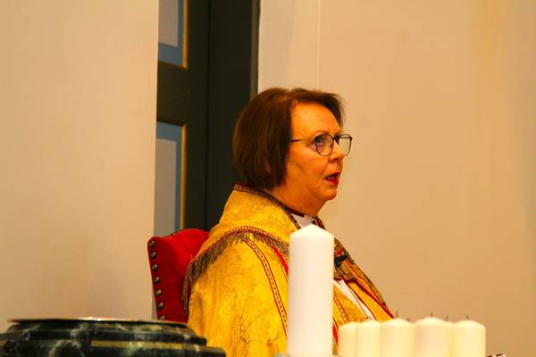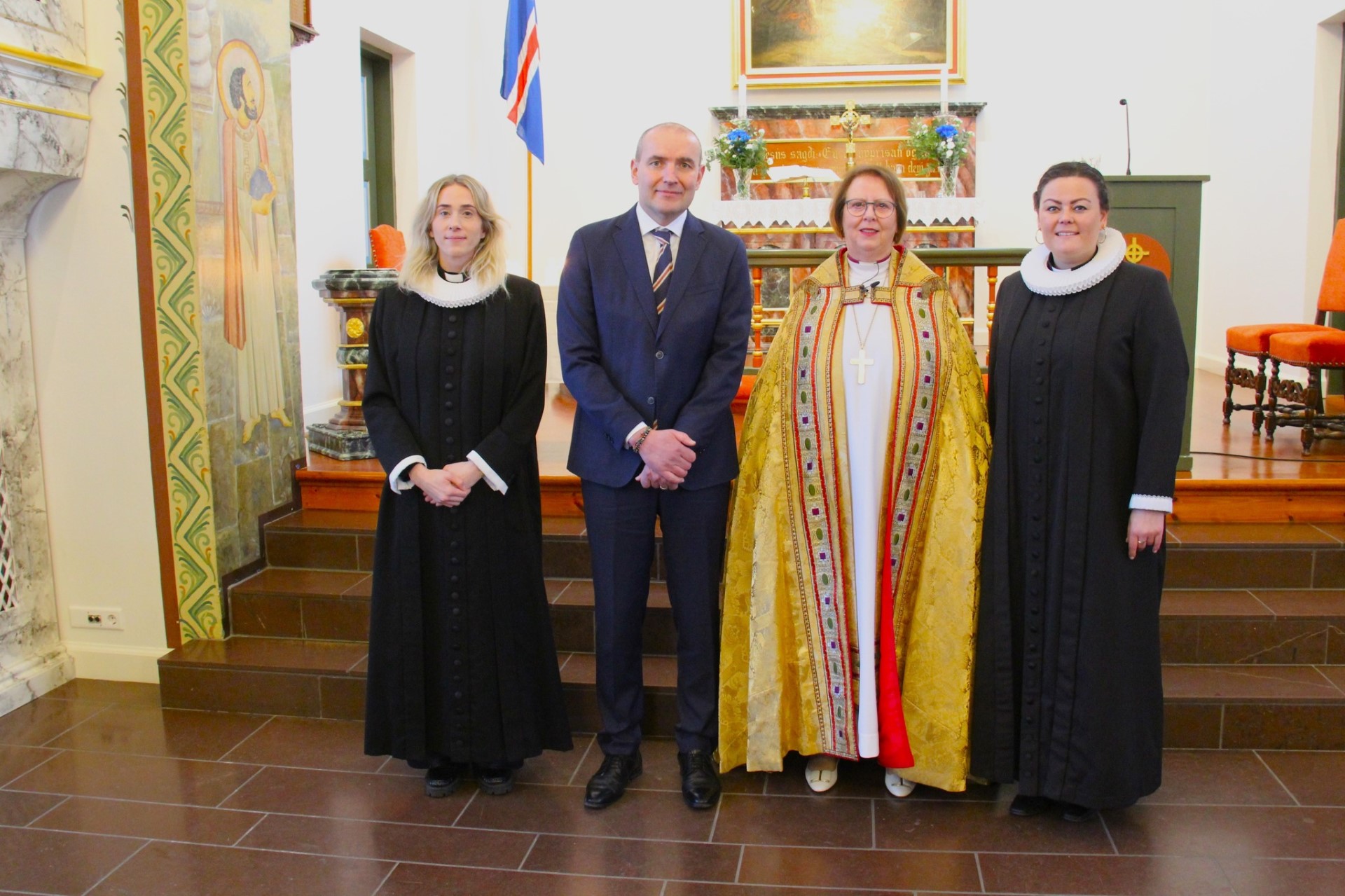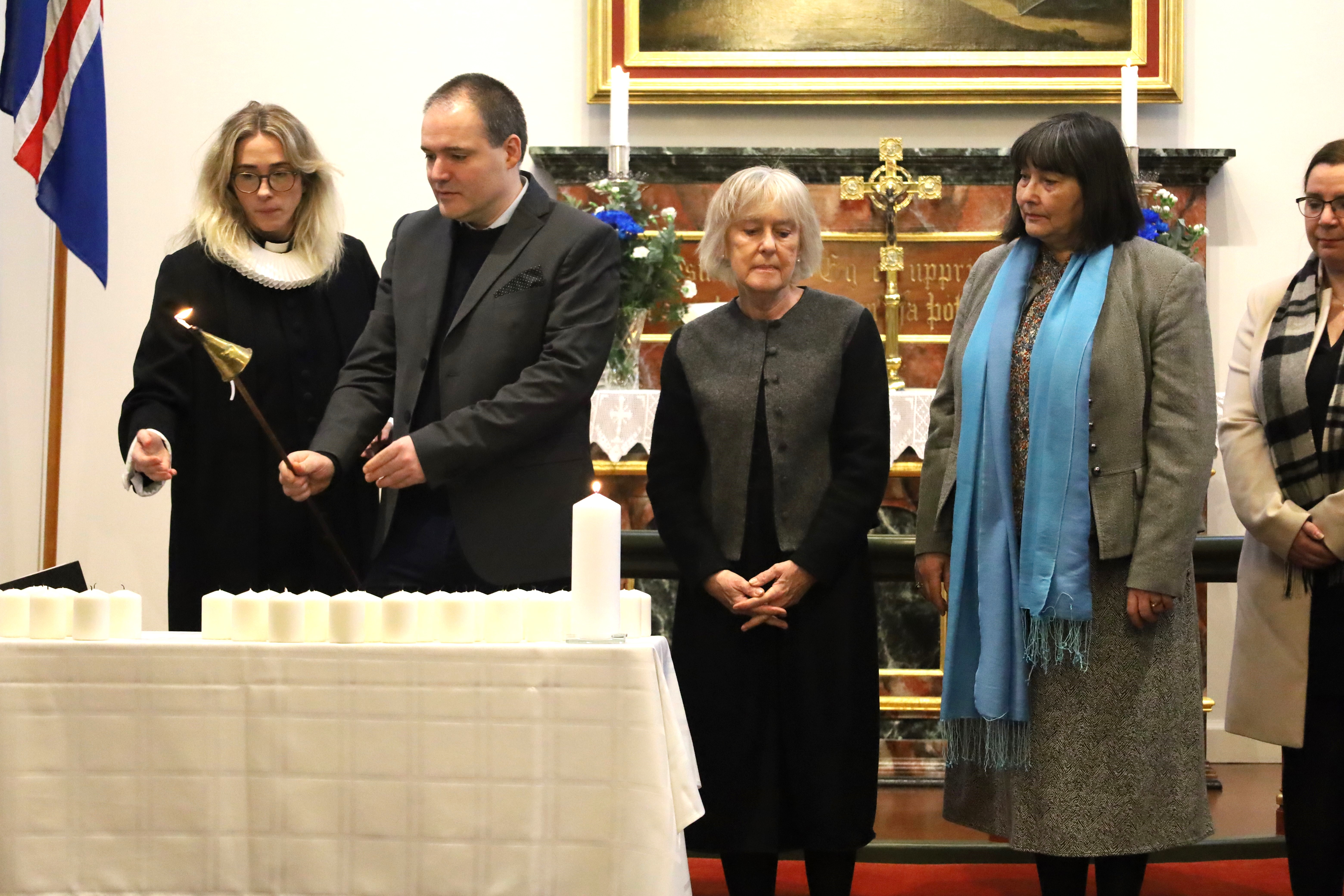 Við minningarguðsþjónustuna í Hafnarfjarðarkirkju flutti herra Guðni Th. Jóhannesson forseti Íslands ávarp og frú Agnes M. Sigurðardóttir biskup Íslands flutti hugleiðingu.