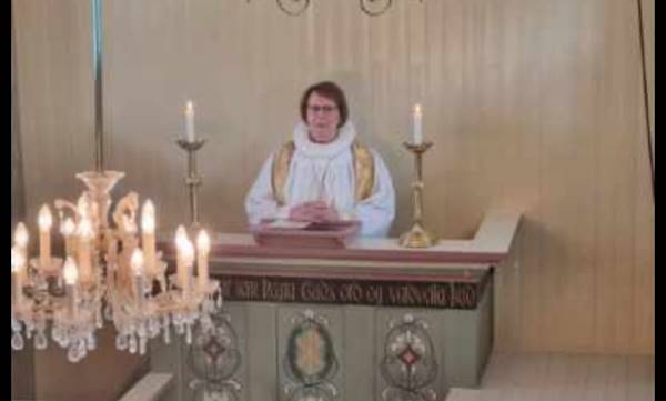 Kirkjan var þétt setin nú á sunnudaginn þegar biskup prédikaði og blessaði söfnuðinn.