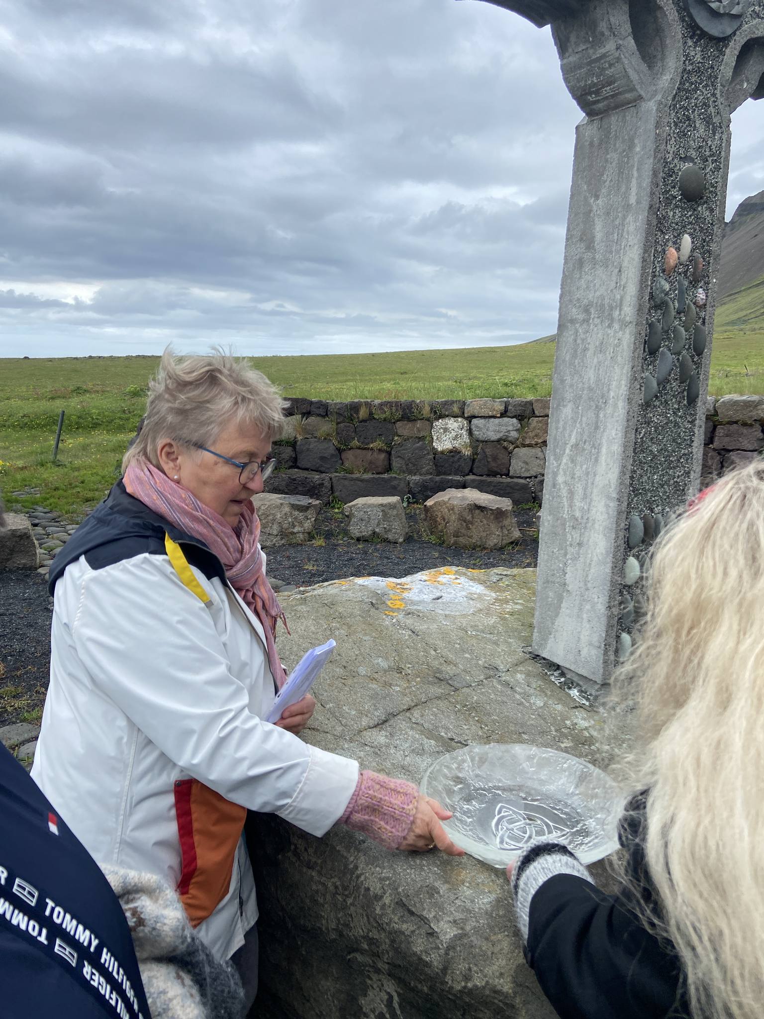 Þá hellti hún vatni úr Grundará undir Kerhólakambi í fontinn og viðstaddir minntust skírnar sinnar í lok stundar.