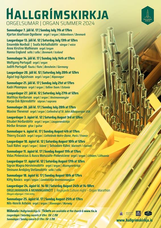 Dagskrá Orgelsumars í Hallgrímskirkju 2024: