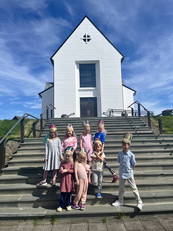 Þau tóku þátt í söng- og dansleikhúsi Raddbandsins og sungu með Gutta sem skoðaði Skáholtsstað með sínum augum.