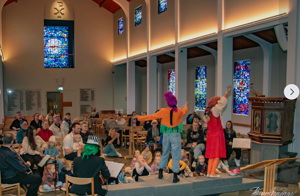 Þá koma myndir frá barnadagskránni, fyrst frá Raddleikhúsi barna, þá tómatskúlptúr og loks kórónum frá gluggum Gerðar Helgadóttur.