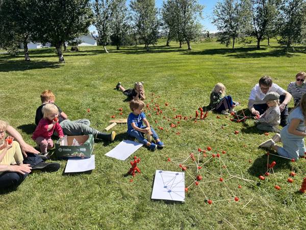 Börnin bjuggu til kórónur í anda listglers Gerðar Helgadóttur, bjuggu til skúlptúra úr tómötum frá Friðheimum sem svo voru soðnir í súpu og borðaðir.