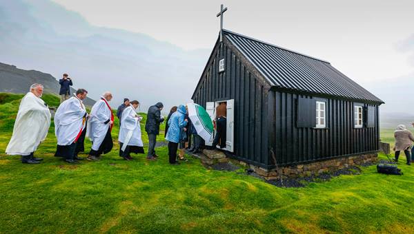 Hér fyrir neðan er mynd frá vígslu Krísuvíkurkirkju á hvítasunnudag þann 5. júní árið 2022.