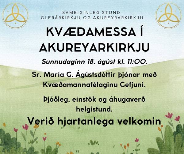 Glerárkirkja og Akureyrarkirkja standa saman að fjölbreyttum sumarmessum í Akureyrarkirkju kl. 11:00 á sunnudögum.