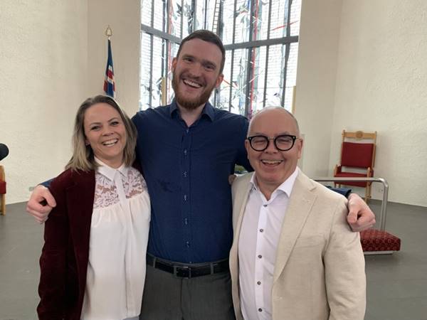 Myndirnar hér fyrir neðan eru annars vegar af Ástu Haraldsdóttur organista Grensáskirkju og hins vegar af Unu Dóru, Marteini Snævarri og Jónasi Þóri.