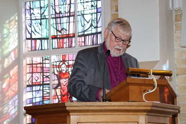 Biskup helgaði steininn og blessaði söfnuðinn.