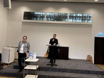 Í kirkjunni var málstofa um sálgæslu og tónlist.