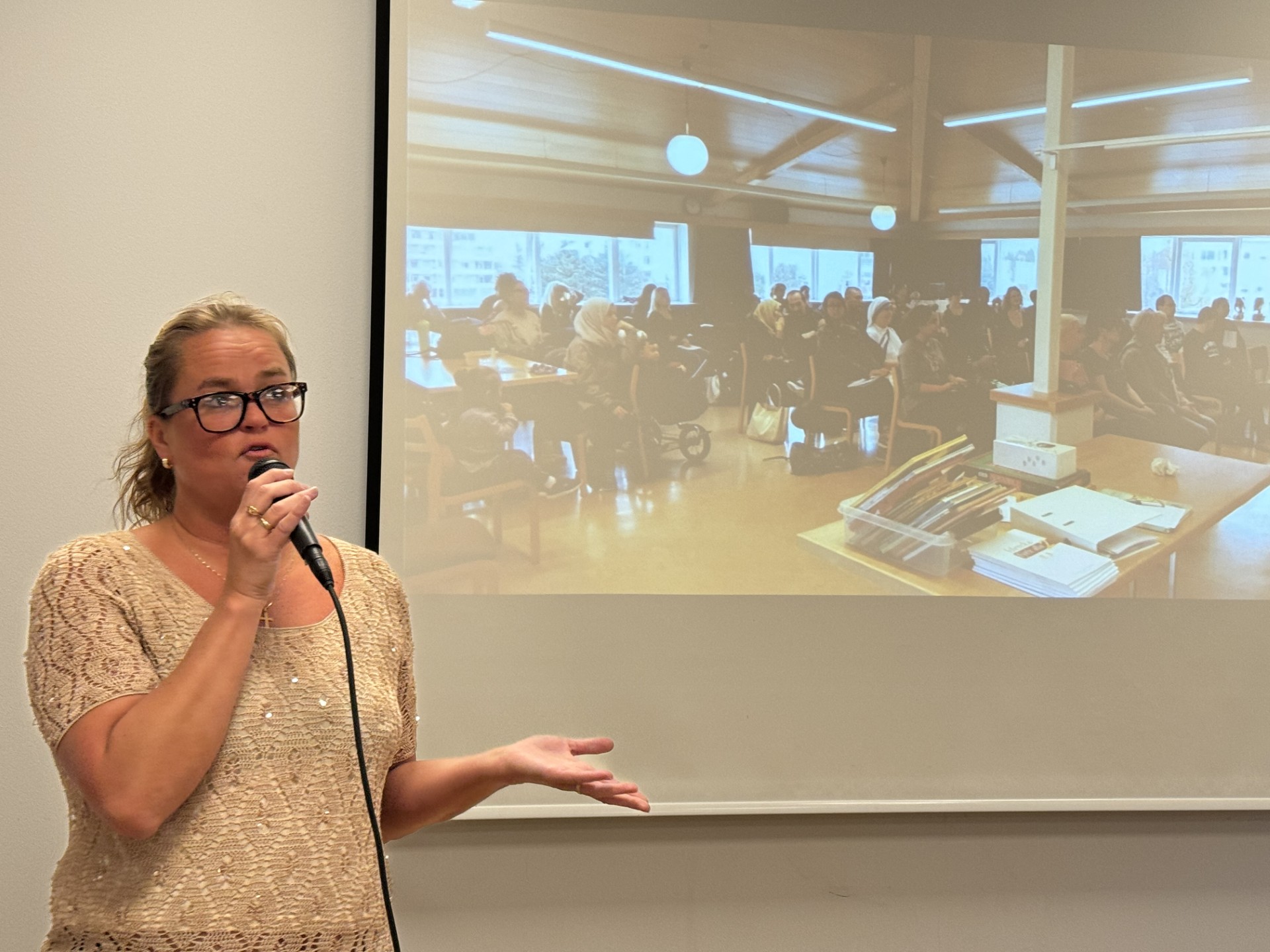Í kennslustofunni ræddi Helga Vilborg Sigurjónsdóttir, verkefnastjóri innanlandsstarfs Kristniboðssambandsins um íslenskukennslu meðal innflytjenda, flóttafólks og hælisleitenda.