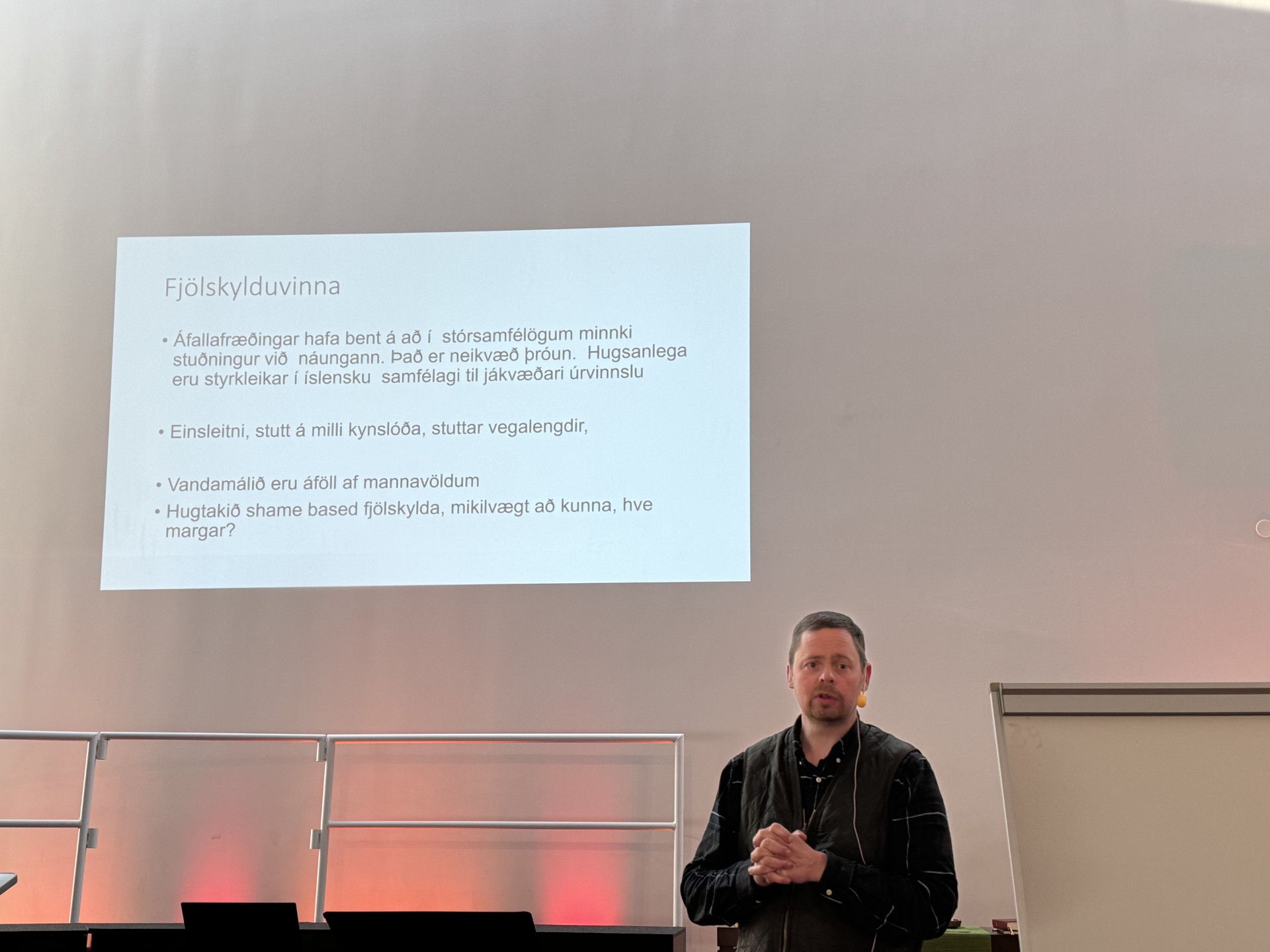 Í kirkjunni ræddi sr. Vigfús Bjarni Albertsson forstöðumaður Sálgæslu og fjölskylduþjónustu kirkjunnar um fjölskyldur í sorg og áföllum.
