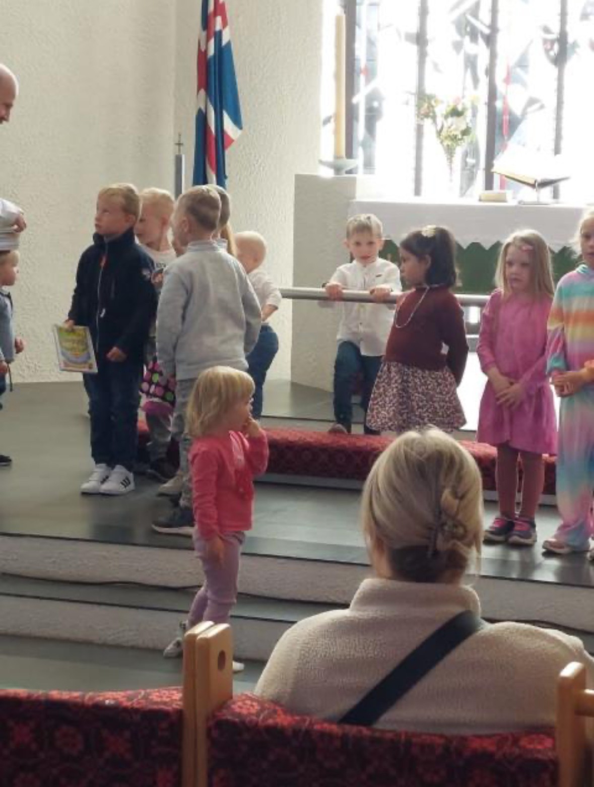 Sóknarnefndin bauð öllum fimm ára börnum, sem skráð eru í þjóðkirkjuna og búsett eru í hverfinu, sérstaklega til þátttöku í barnamessu dagsins, þar sem formaðurinn afhenti þeim bókina að gjöf.