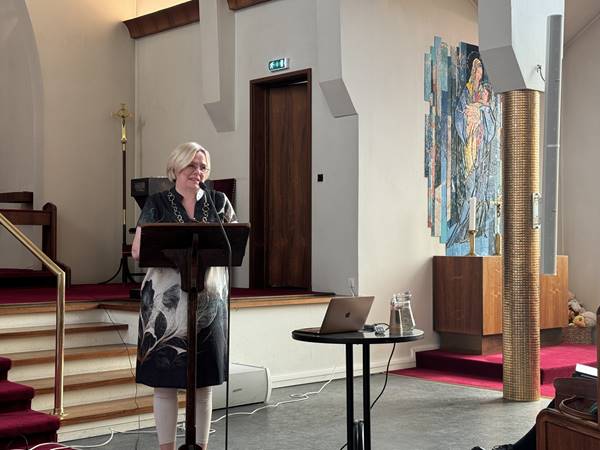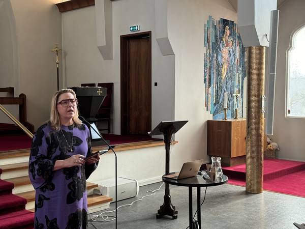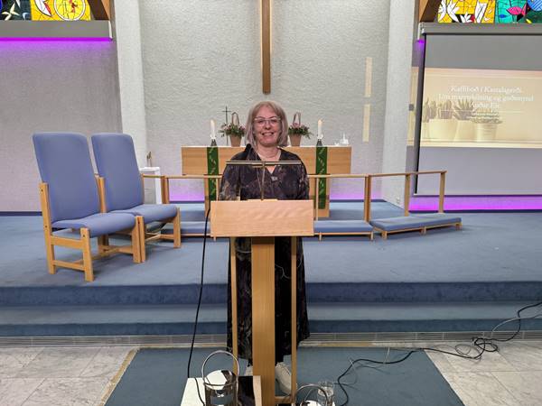 Að lokum hélt Helga Bragadóttir prestur í Digranes og Hjallaprestakalli erindi um aðstæður í kirkjunni þegar hún vígðist, en hún var 113. konan í hópi vígðra kvenna og vígðist árið 2022.