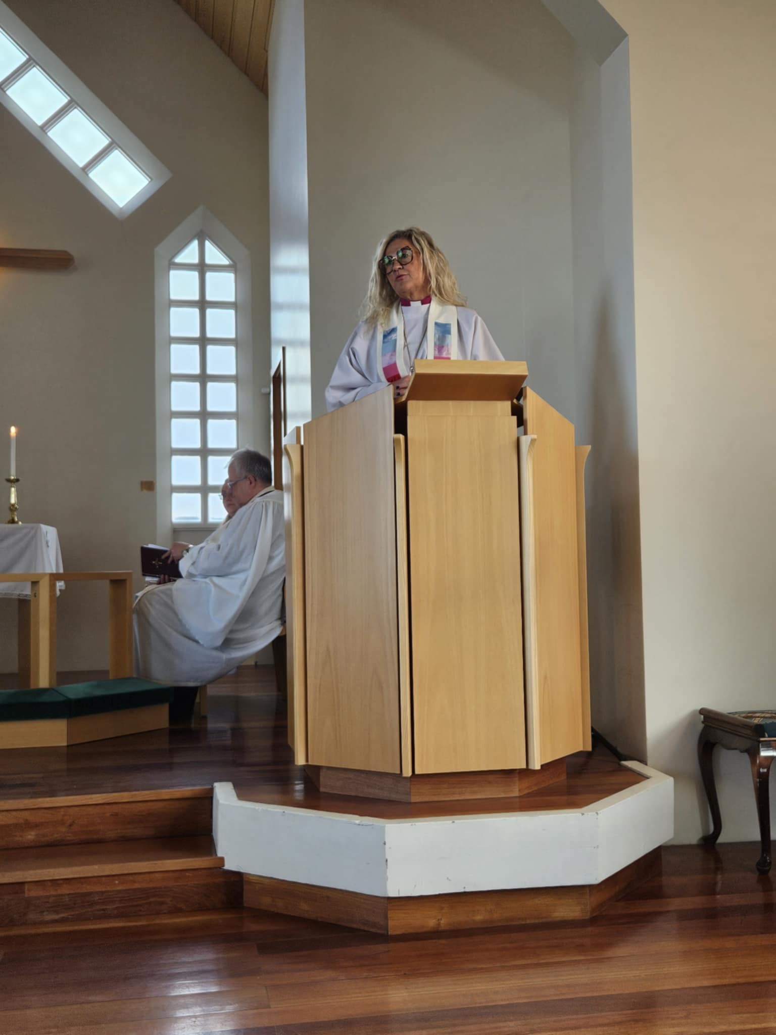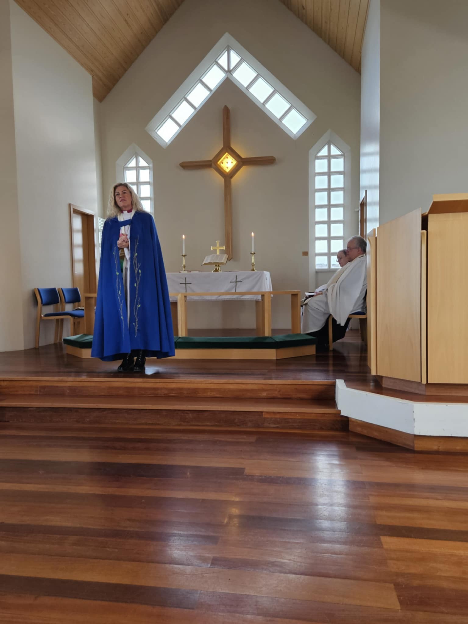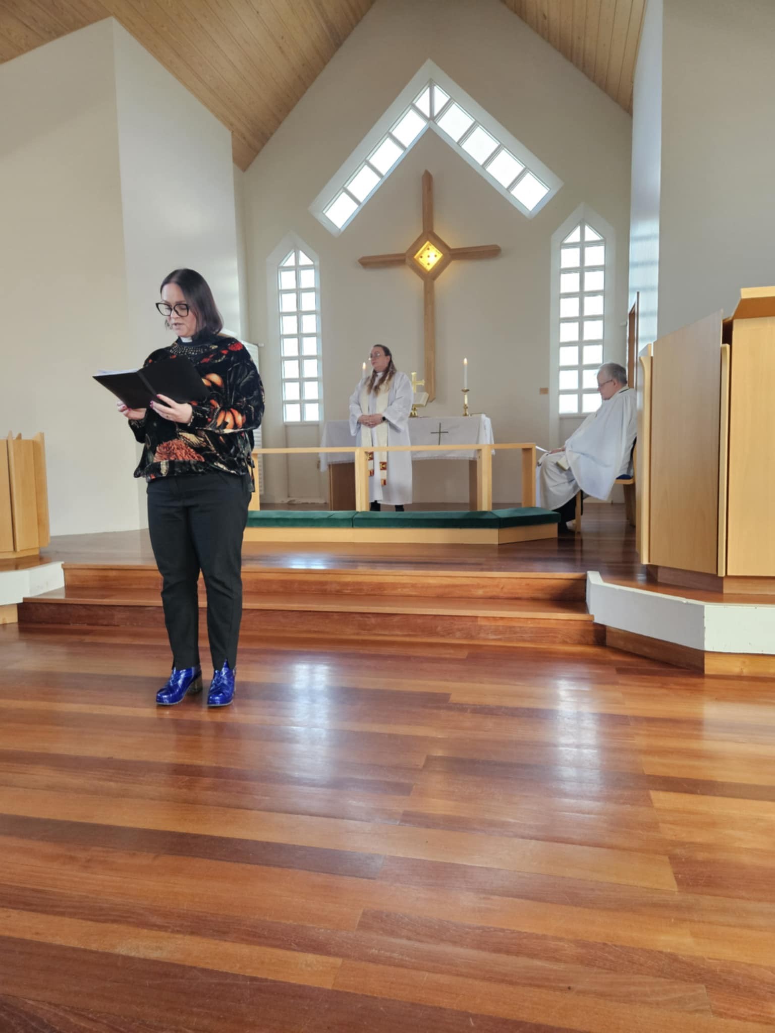 Þakkaði hún sjálboðaliðum sem hafa þjónað kirkjunni í gegnum tíðina og þeim fyrirtækjum sem hafa styrkt kirkjuna, nú síðast í endurbótum á safnaðarheimilinu.