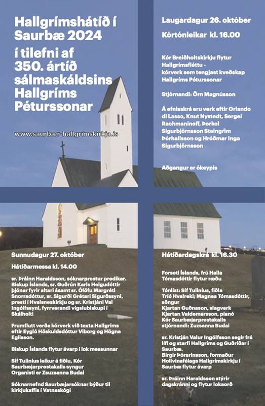 Í ár er sérstök hátíð á 350 ára ártíð Hallgríms en hann lést árið 1674 og af því tilefni er blásið til Hallgrímshátíðar í Saurbæ.