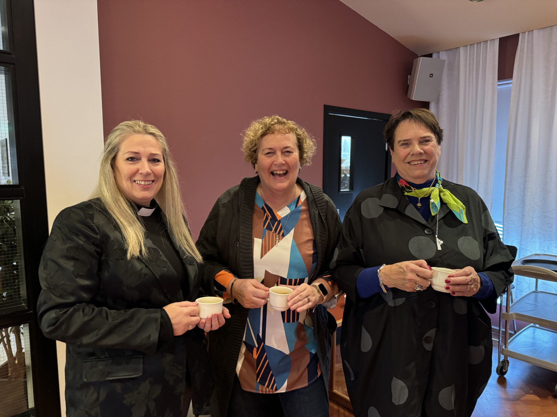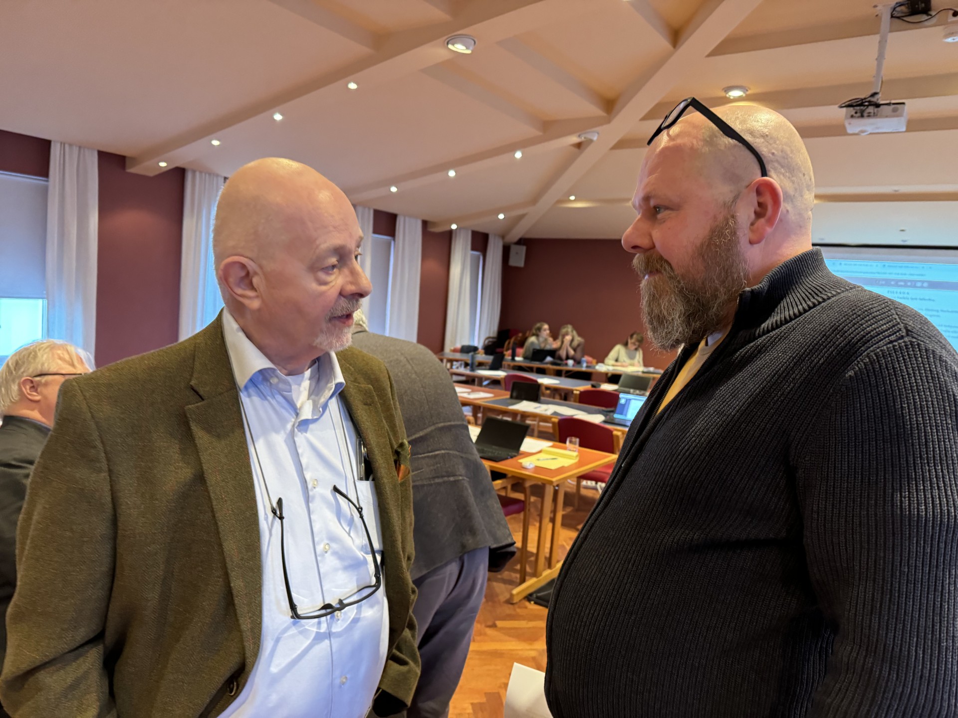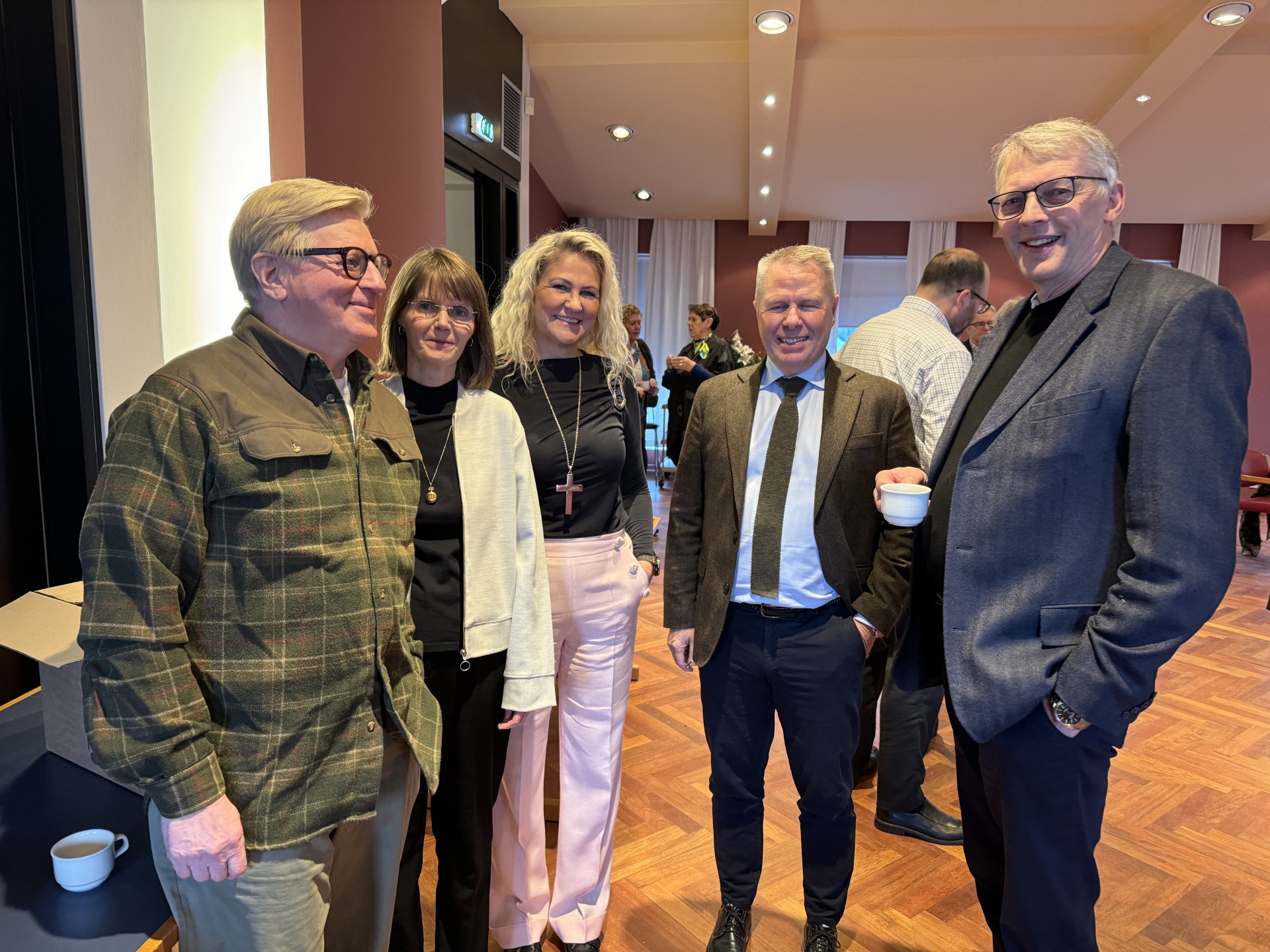 Myndirnar hér fyrir neðan eru teknar í kaffihléi og sýna hinn góða anda sem réð ríkjum á kirkjuþinginu.