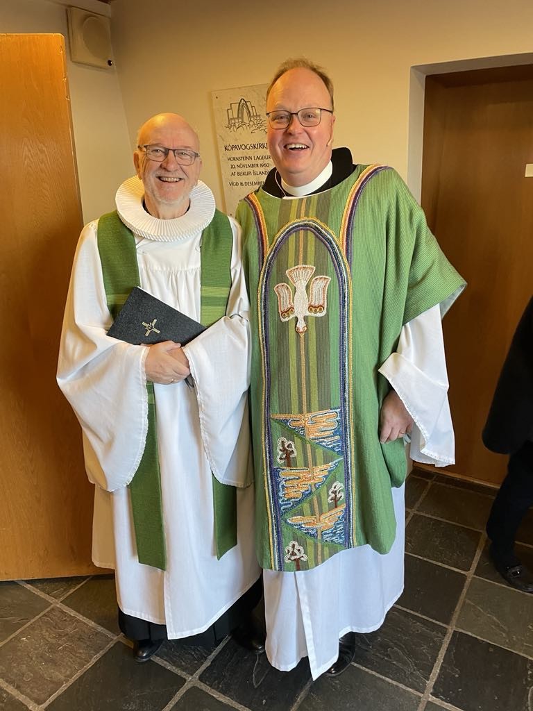 Sr. Þorvaldur Karl Helgason, náinn samstarfsmaður Karls til áratuga, prédikaði og þjónaði fyrir altari ásamt Sigurði Arnarsyni, sóknarpresti í Kópavogskirkju og tengdasyni Karls í guðsþjónustunni.